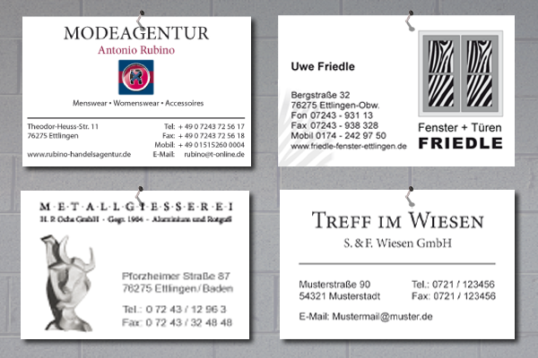 Hier zeigen wir Ihnen eine kleine Auswahl unserer Printprodukte aus Klein- und Großformat wie Flyer, Visitenkarten, Briefpapier, Broschüren, Plakate, Baupläne, Werbbanner u.v.m., gedruckt auf unterschiedlichen Materialien wie Papier, Overheadfolien, Kartons, Klebefolien usw.. Zu unseren Kunden gehören Klein- und Großunternehmen, Behörden, Vereine und Privatpersonen.